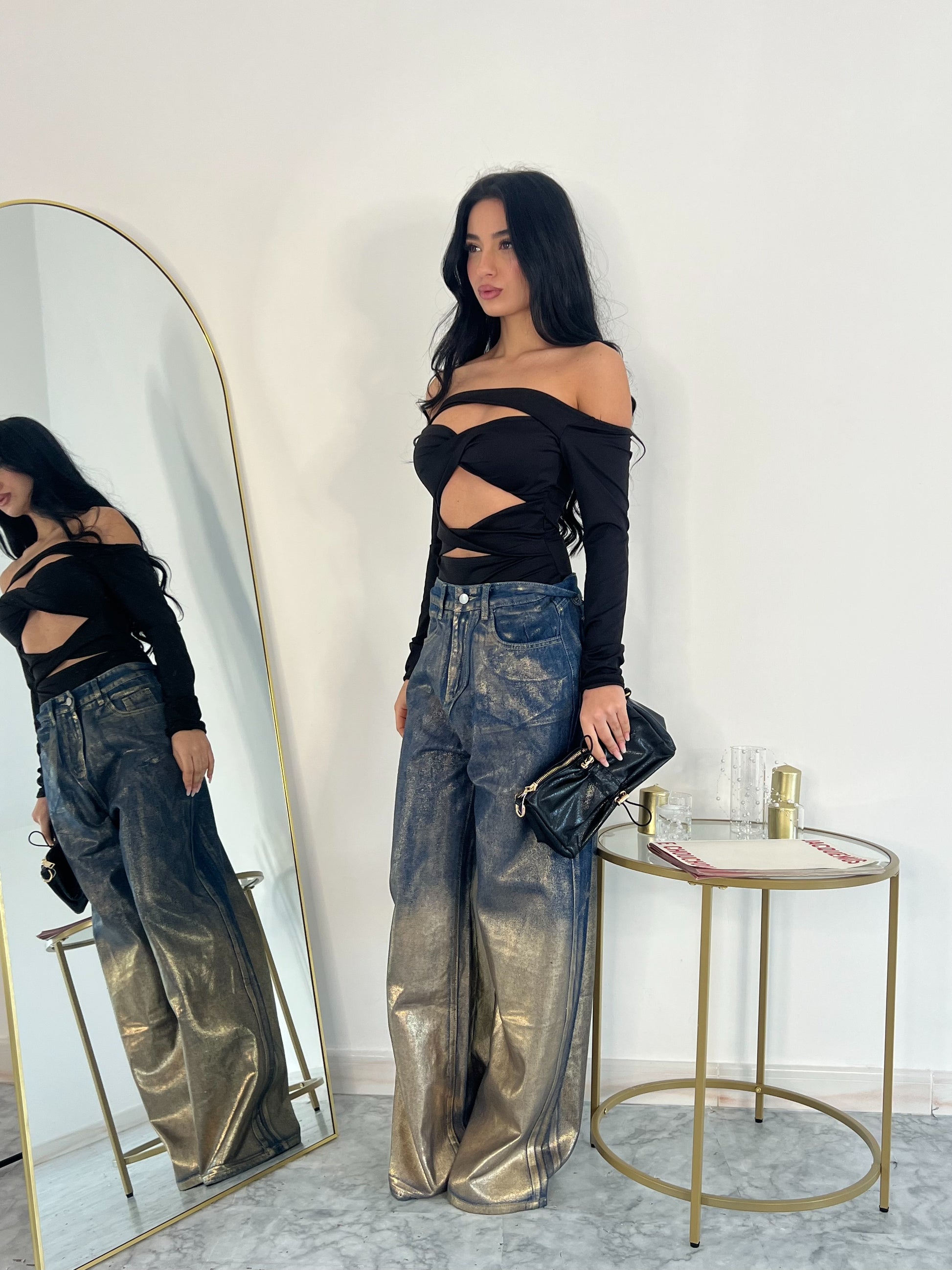 Body cut out con scollo a barca, elastico