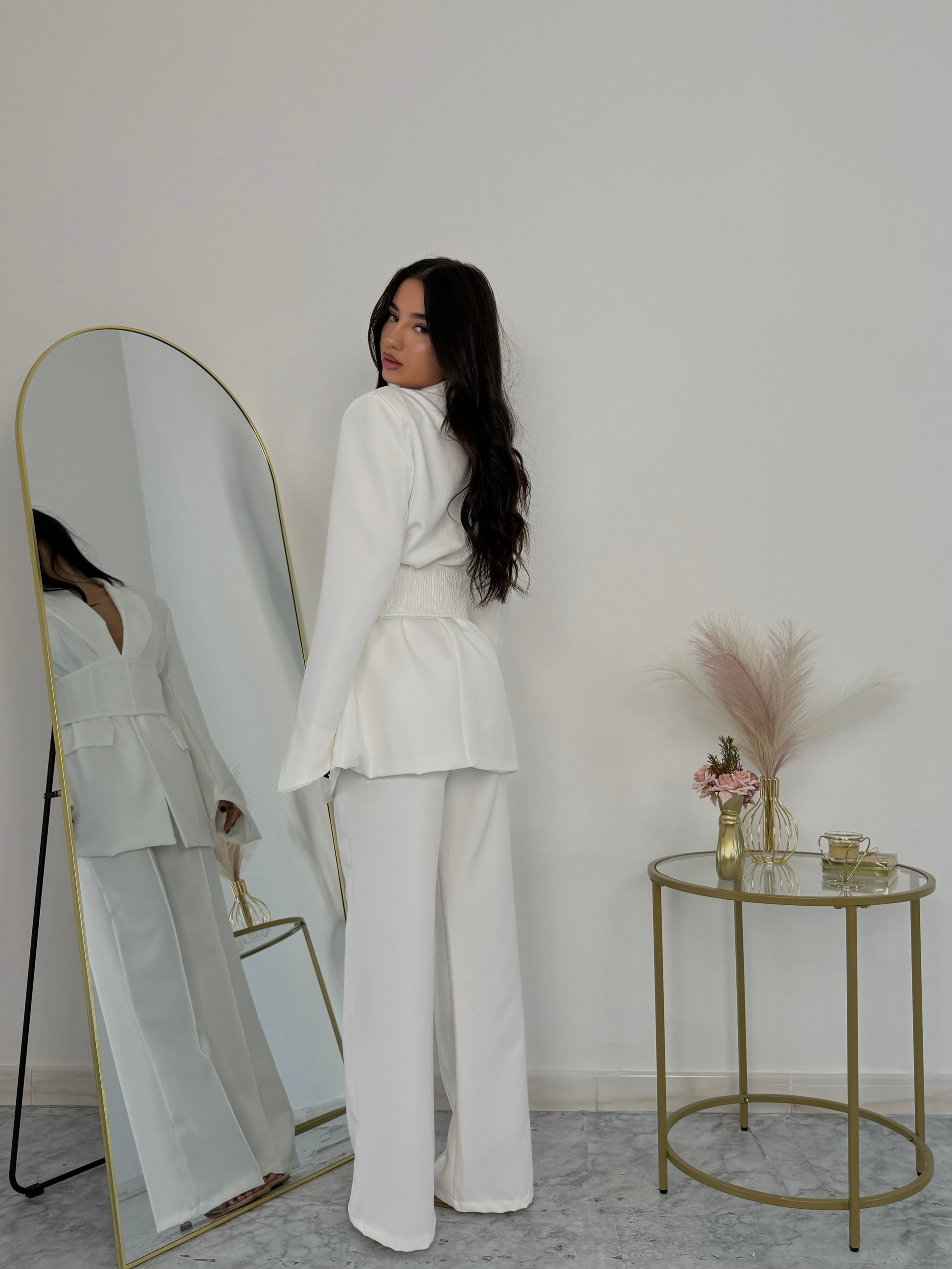 Coordinato con pantalone e giacca bianco, elastico