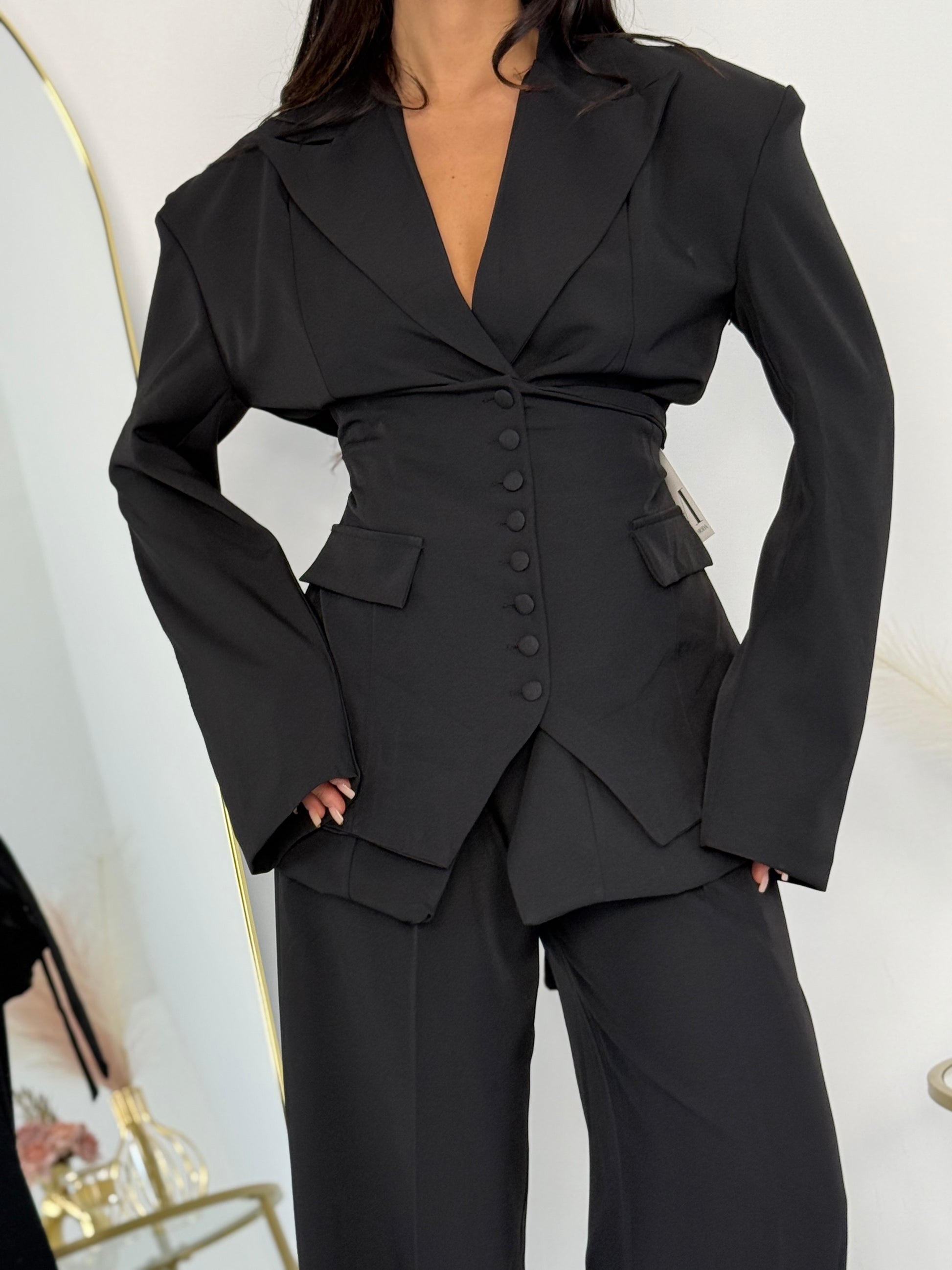 Coordinato tre pezzi con giacca, panciotto e pantalone. Il panciotto è staccato, regolabile