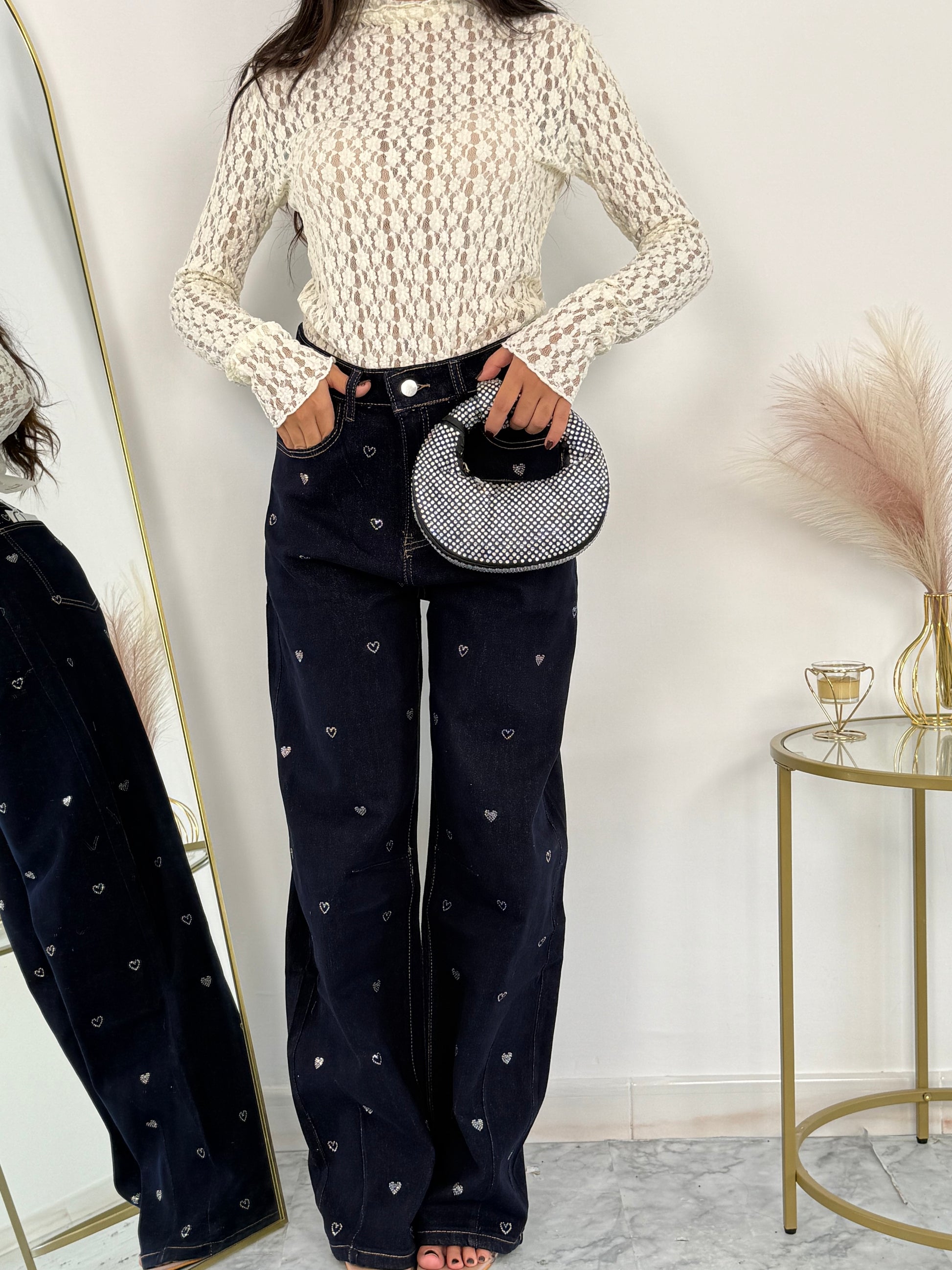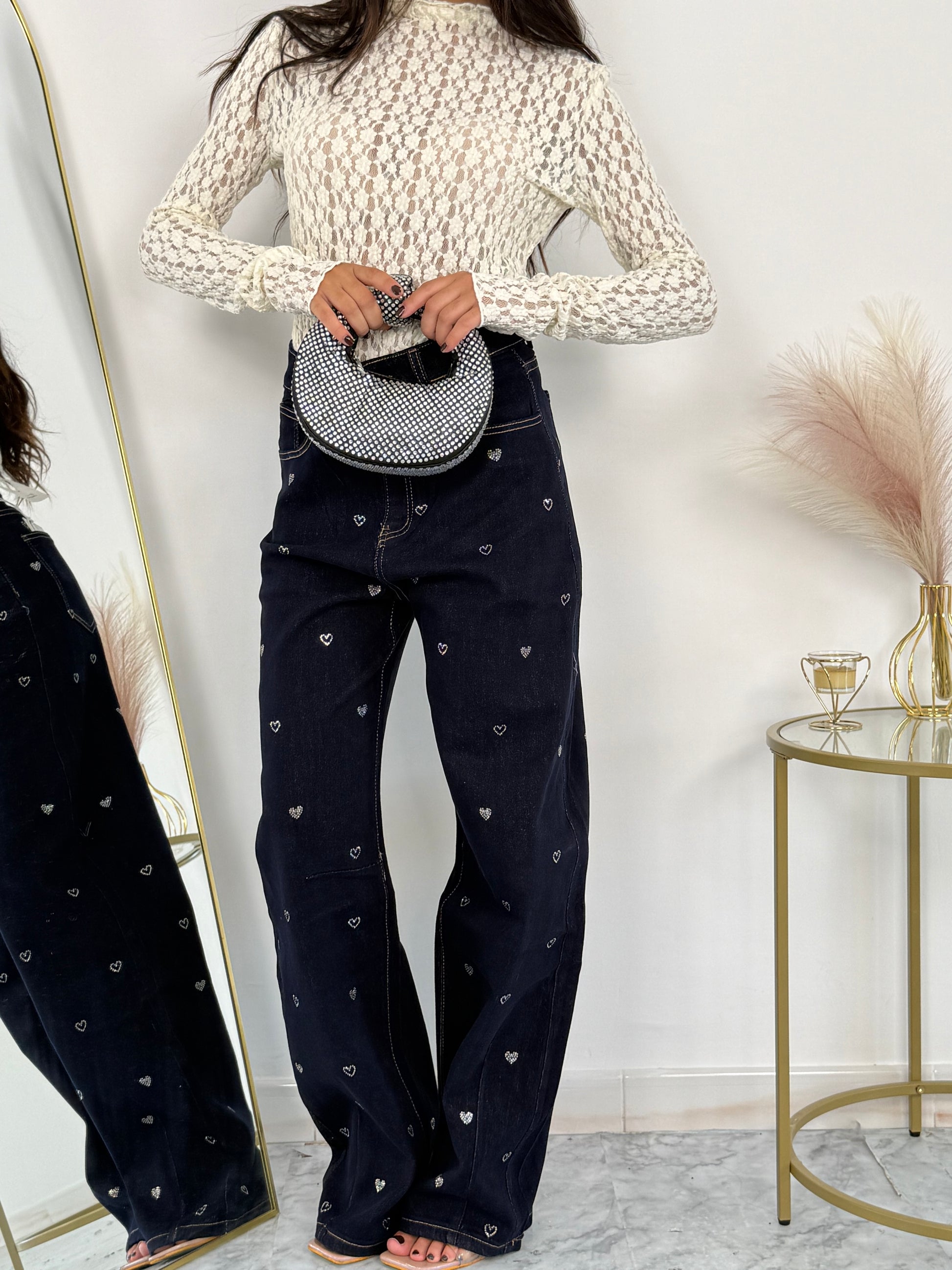 Jeans Heart Embroidery