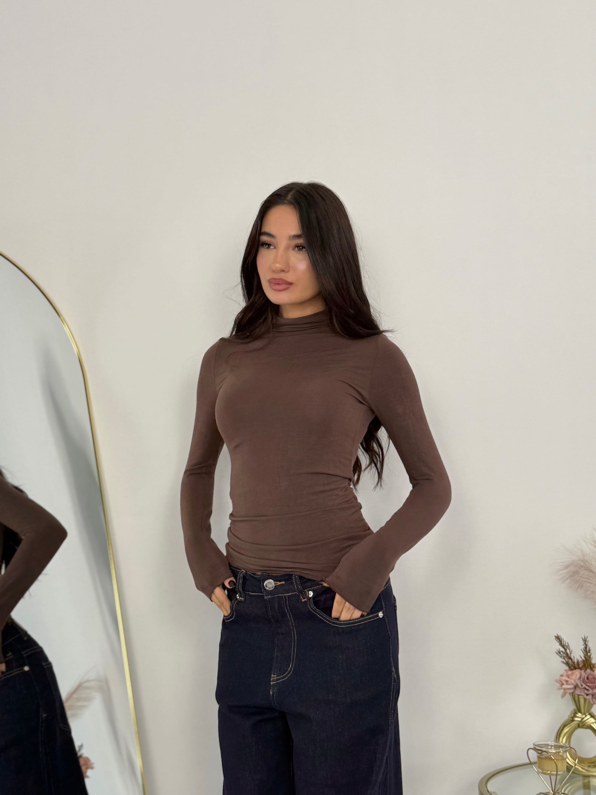 Maglia modello intimissimi marrone semitrasparente, elastica