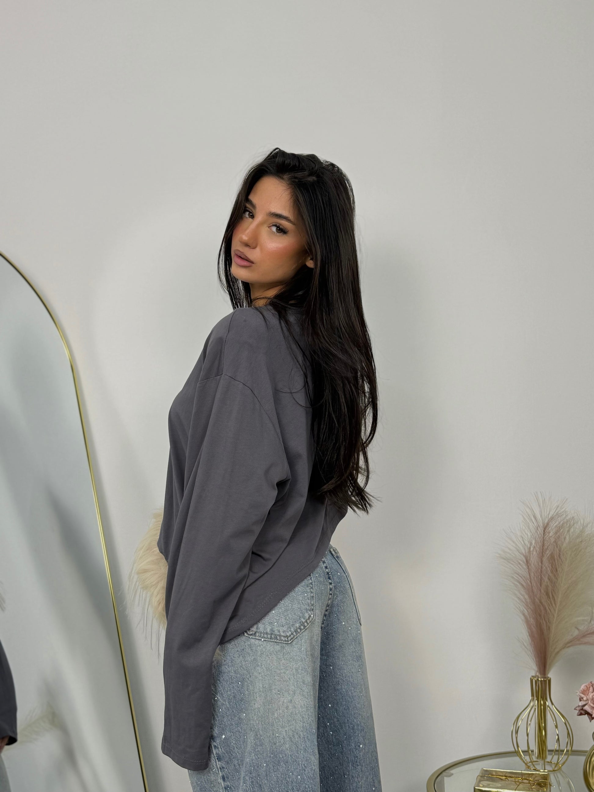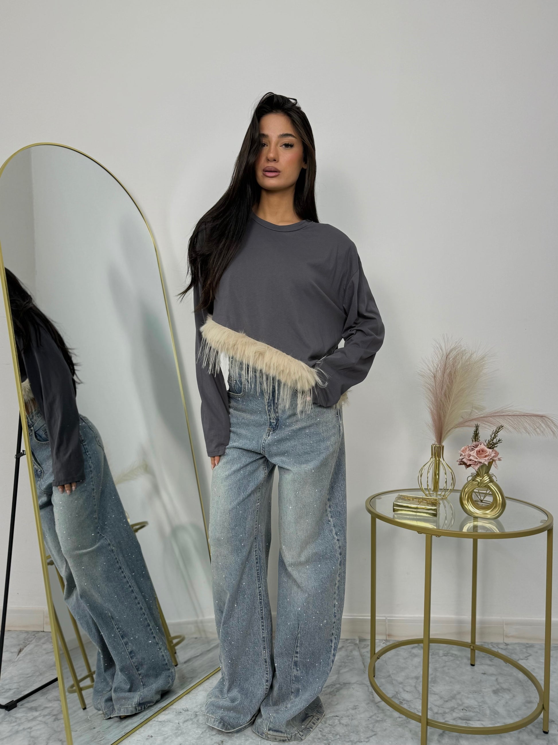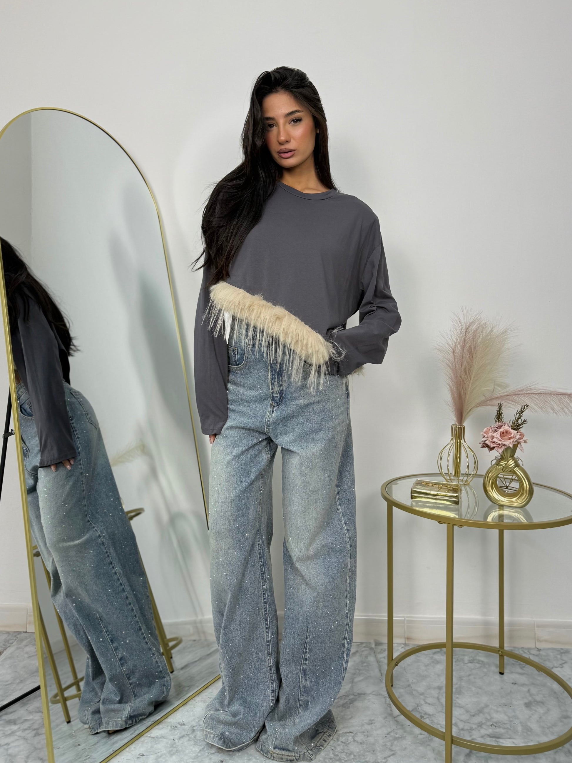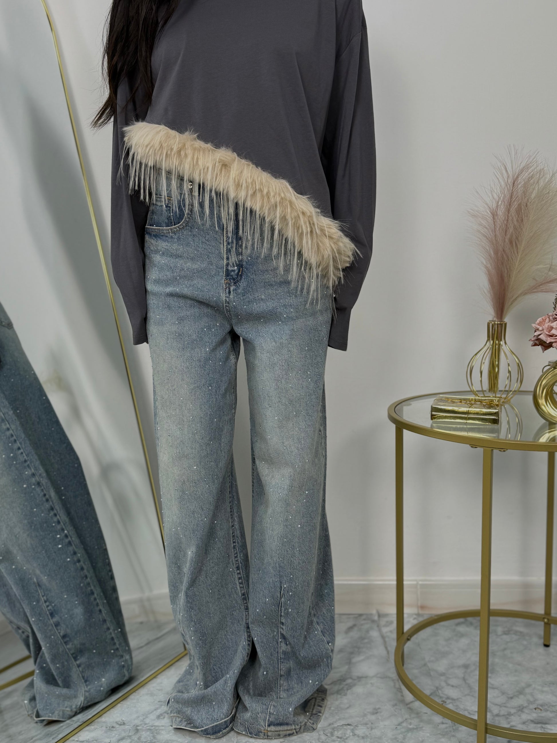 Pantalone con applicazioni di brillantini, la modella indossa Xs